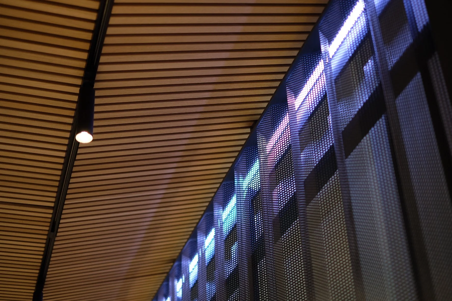The standout gesture was the “brainbox”. A black clad, backlit meeting room that sat like a thought at the centre of the space. A calm, slightly enigmatic presence. To us, it became a symbol of the unknowable power and possibility of AI.