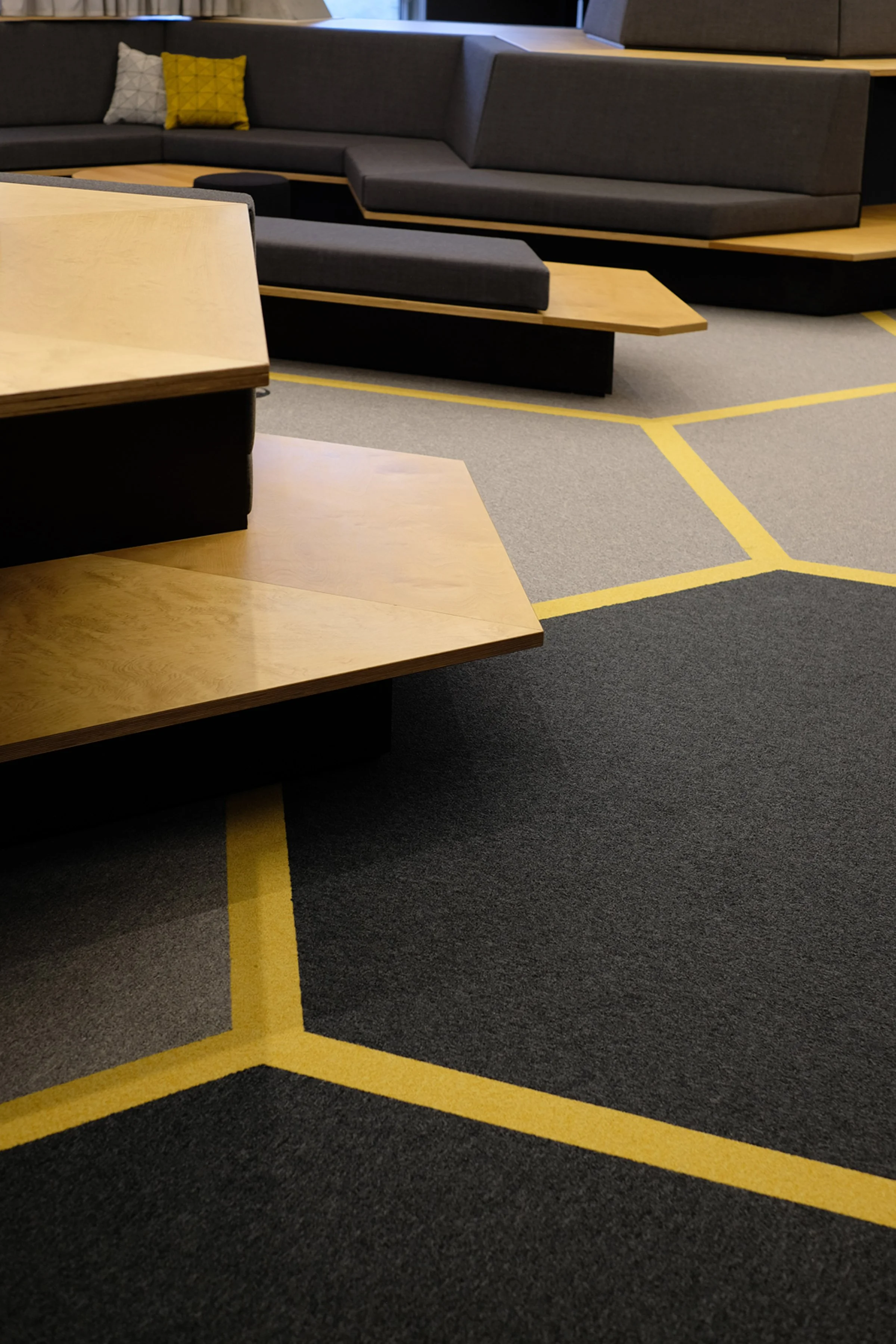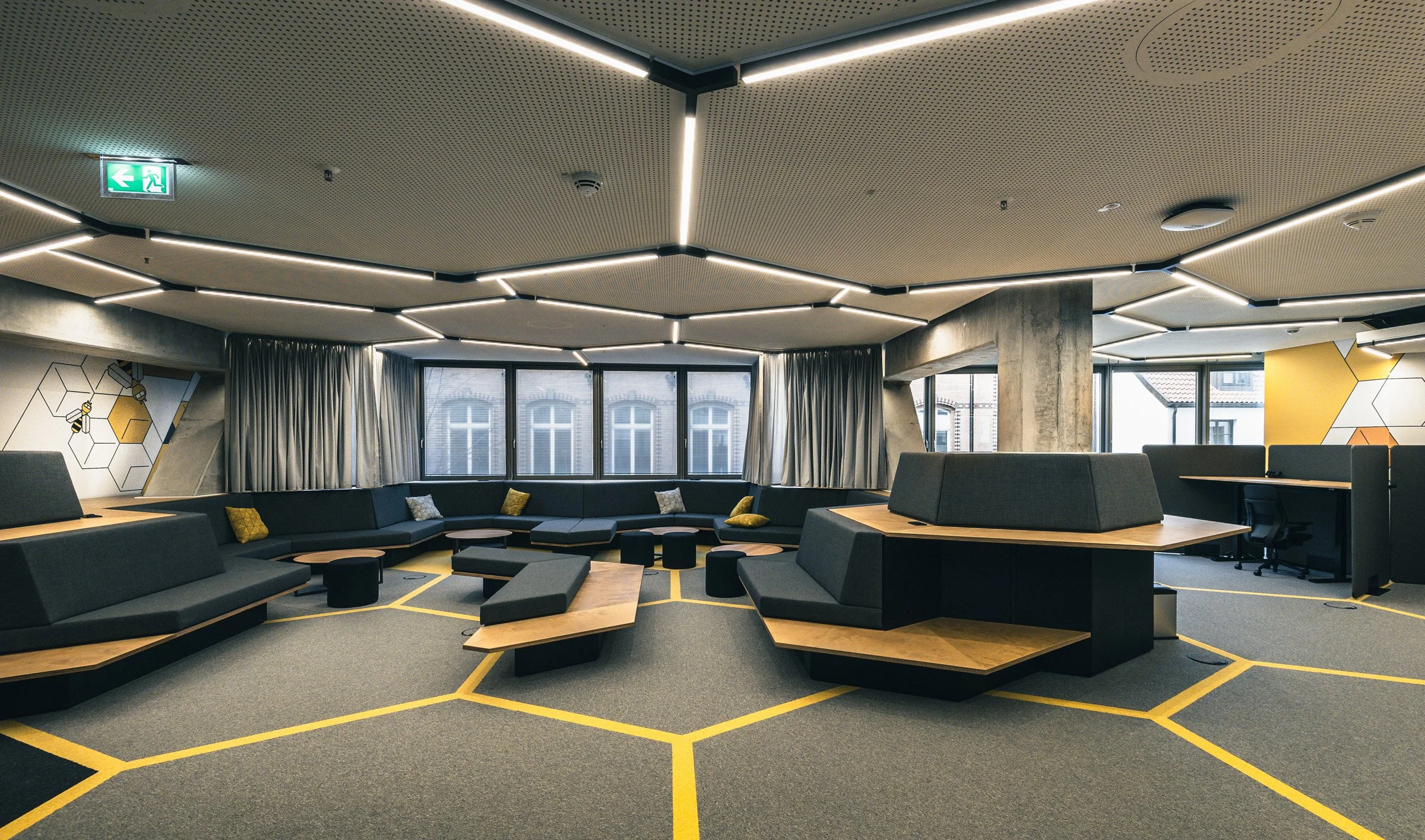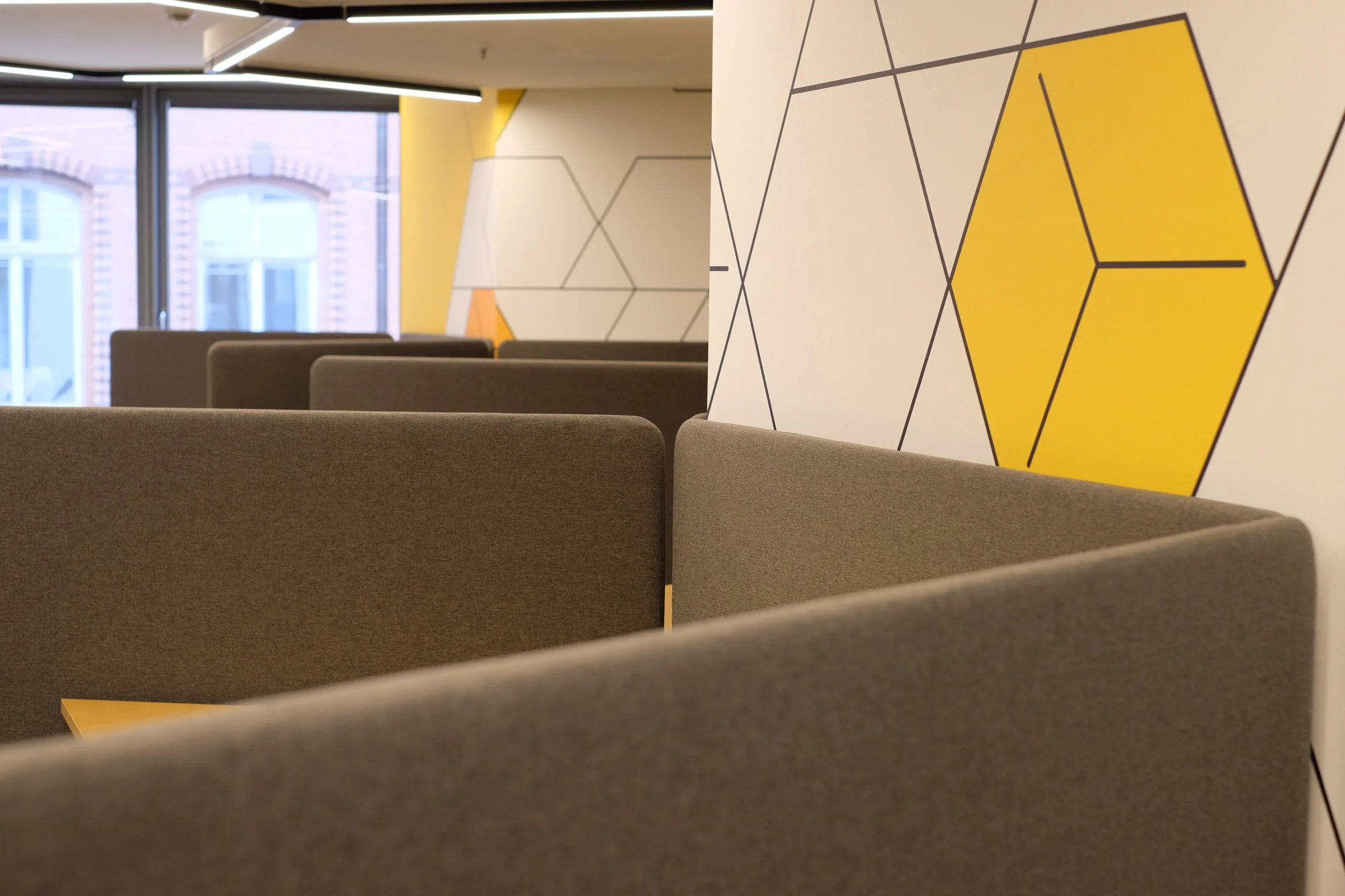 The HIVE draws its identity from the logic of the hexagon, the shape that gives bees their collective strength and efficiency. By turning this natural geometry into a quiet visual language, the space becomes a branded environment without shouting, where form, colour and crafted details create recognition, warmth and a fresh way of imagining the modern workplace.